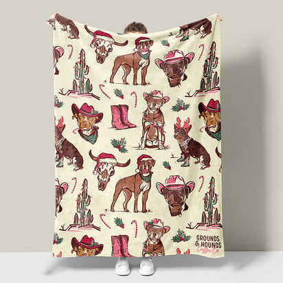 Our new Holiday Hey Buddy Blanket features our "Ruff Rider" pups printed on an ultra soft human size blanket!
