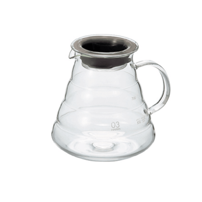 The 800 ml (28 oz) heatproof Hario glass server designed to accompany the Hario V60 Coffee Dripper. The tapered design helps keep the coffee warm for longer by reducing the surface area. Additionally, it makes the server more spill proof and easier to pour from. The server comes with a glass lid and silicone seal, and the lid can serve as a stand for the dripper.