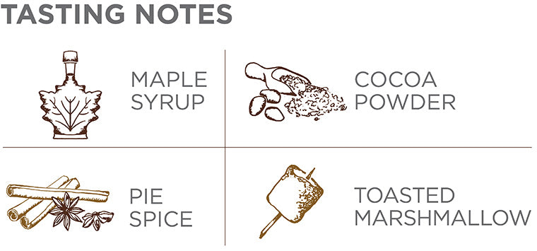 Mouthwatering aromas of Maple Syrup and Toasted Marshmallow are noticed immediately, followed by hints of Cocoa and Pie Spice with your first sip.