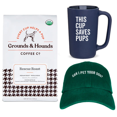 Gifting can mean even more when you purchase our Rescue Roast Hero Gift Bundle! 100% of all profits generated by Rescue Roast Blend are donated to a new rescue organization every month.