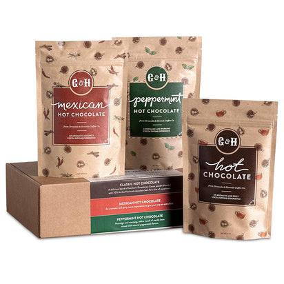 Sweeten your cup, and find the perfect flavor for every mood, with our full selection of heirloom Hot Chocolate! Our Hot Chocolate Lover's Kit includes one bag of each of our premium, Vegan and Gluten Free sipping chocolate, packaged in a custom box, perfect for gifting (or keeping) all year long!