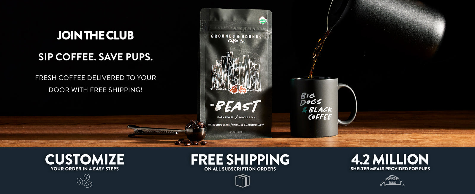 Select your favorite Grounds & Hounds coffee, or trust us to send a new favorite each month!